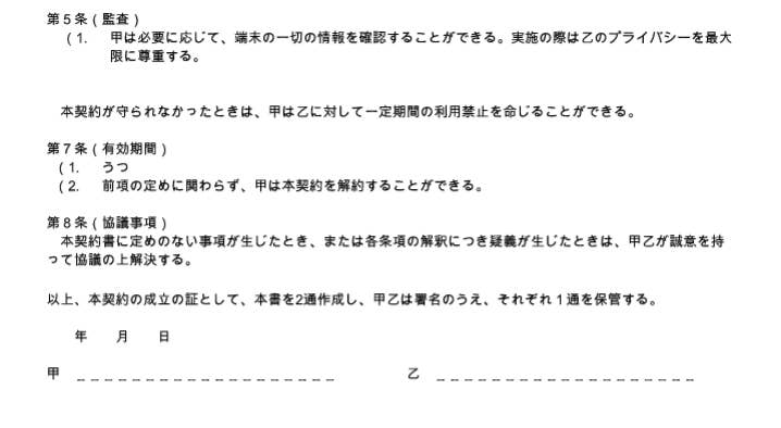 誓約書兼スマートフォン貸与契約書(Google Drive)