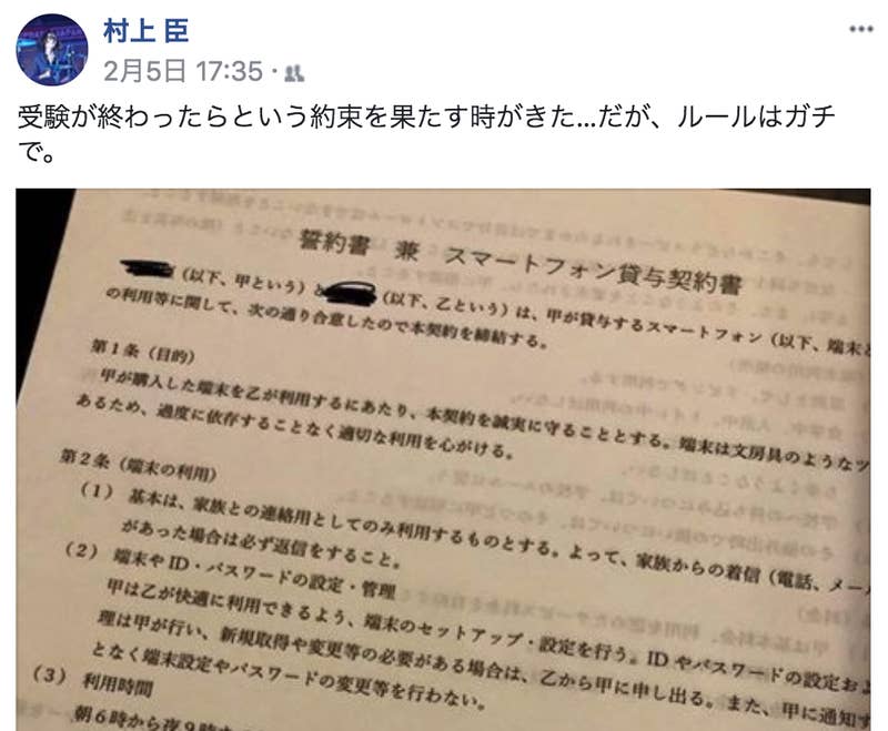 父から息子へ贈る「スマートフォン貸与契約書」が本気すぎると話題